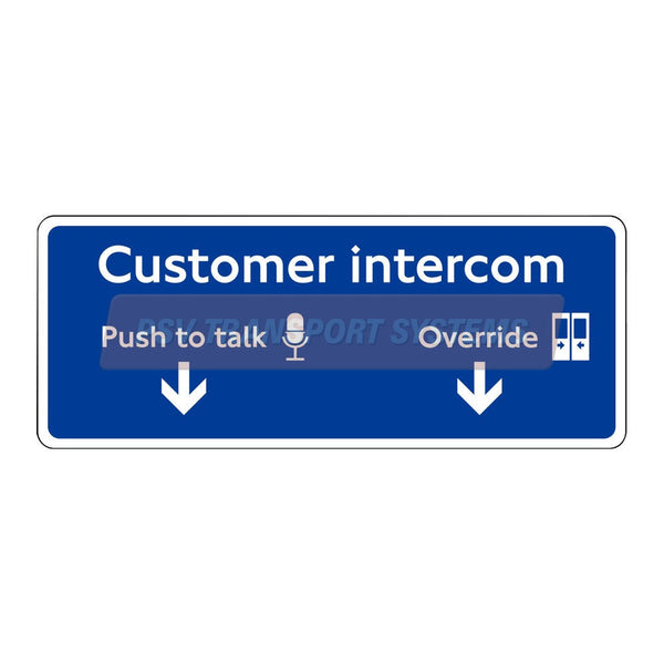 Customer Intercom (Double Arrow) Sticker, White Text On Blue Background, 100 x 40mm
