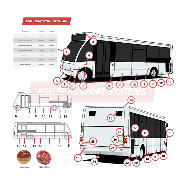 | 25 | Lámpara de freno, intermitente y trasera de 135 mm | PSV/07/200 | PSV/07/200 |